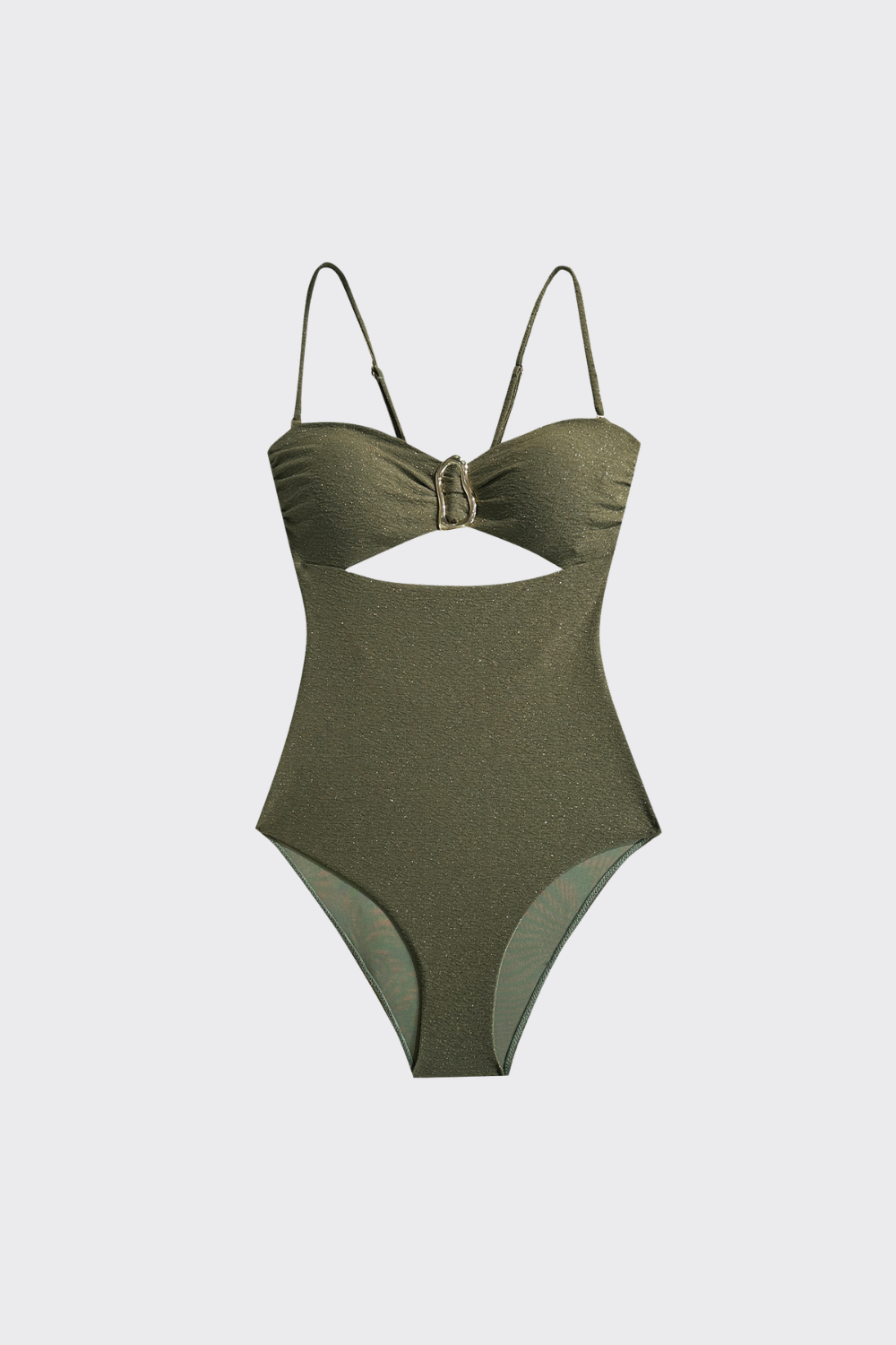 Este innovador traje de baño de una pieza crea el efecto visual de un conjunto de talle alto. La parte superior estil...