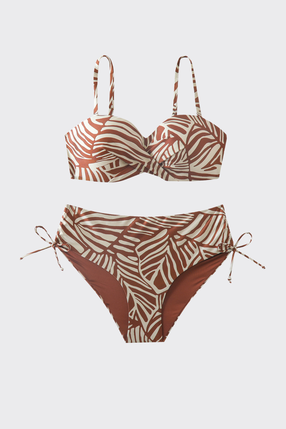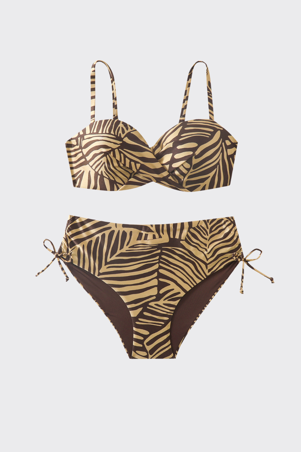 Diseño con un estampado de hojas lineales de inspiración orgánica. El top presenta un ligero fruncido en la base de l...