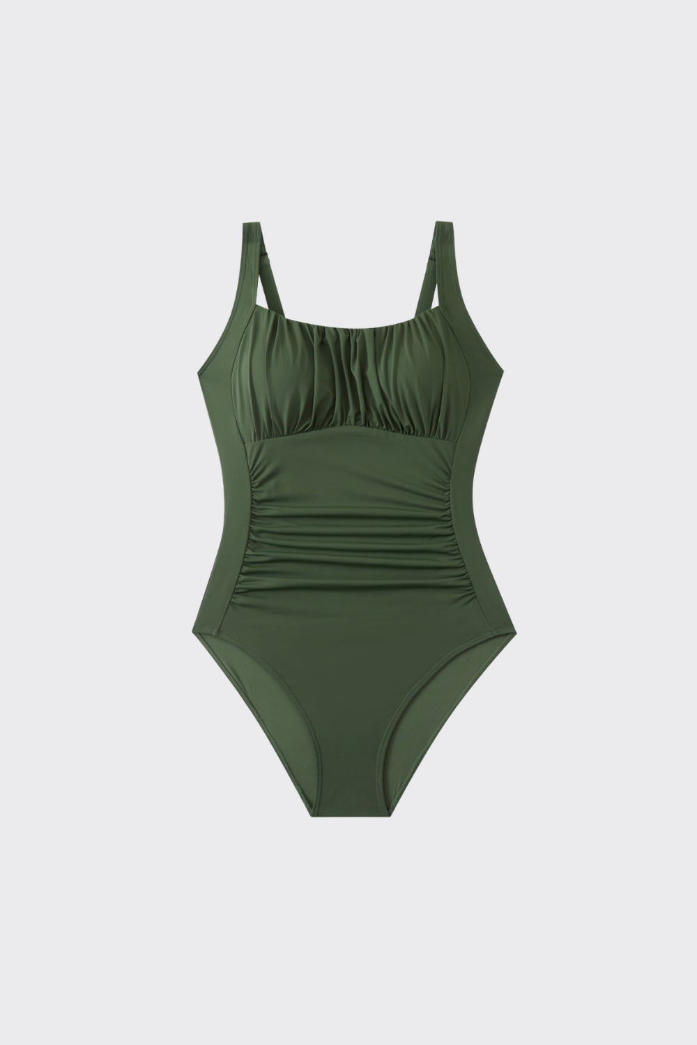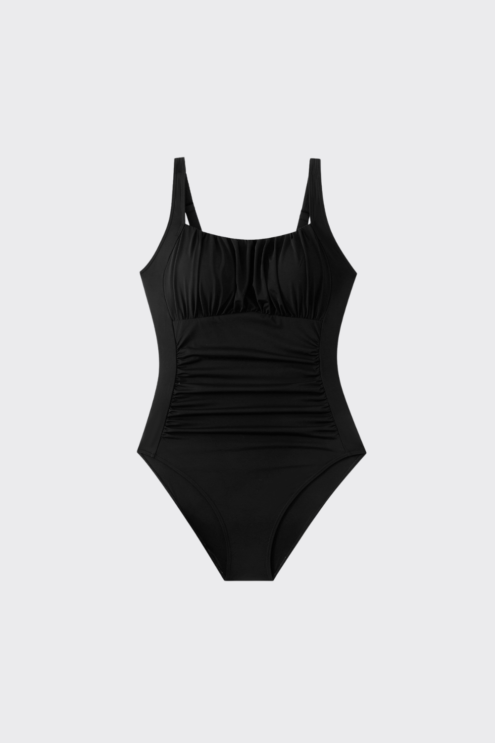 Bañador de una pieza con escote redondeado y tirantes anchos que aportan una sujeción firme y cómoda. El frontal inco...