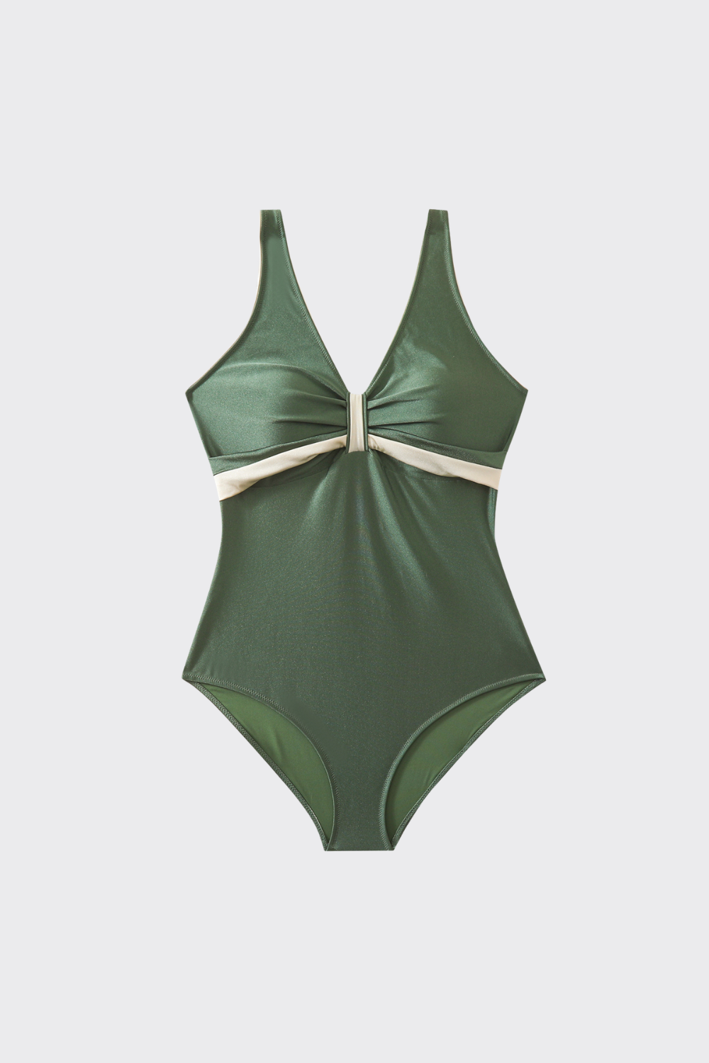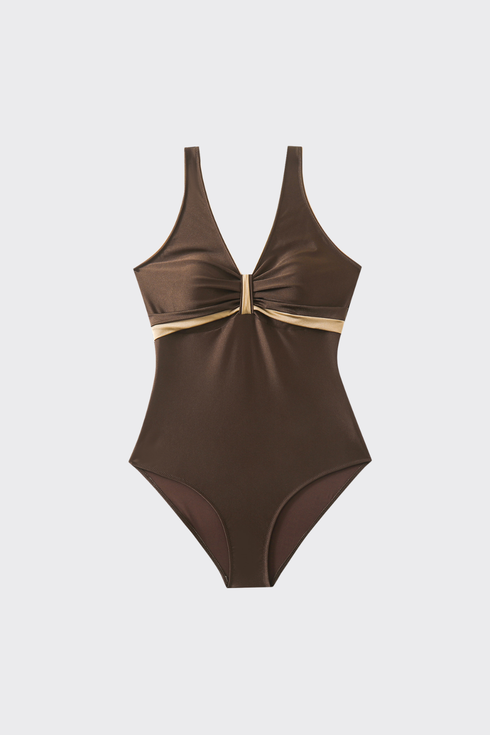 Este bañador de una pieza derrocha exclusividad. Destaca por su diseño envolvente con ribetes dorados que enmarcan ta...