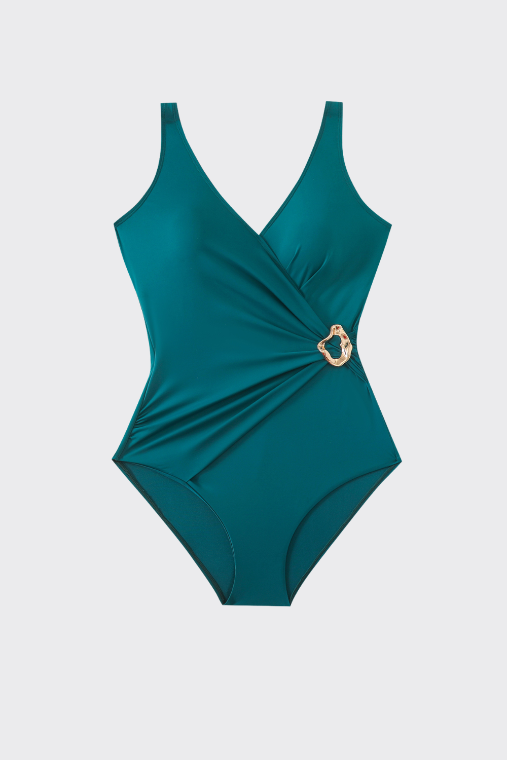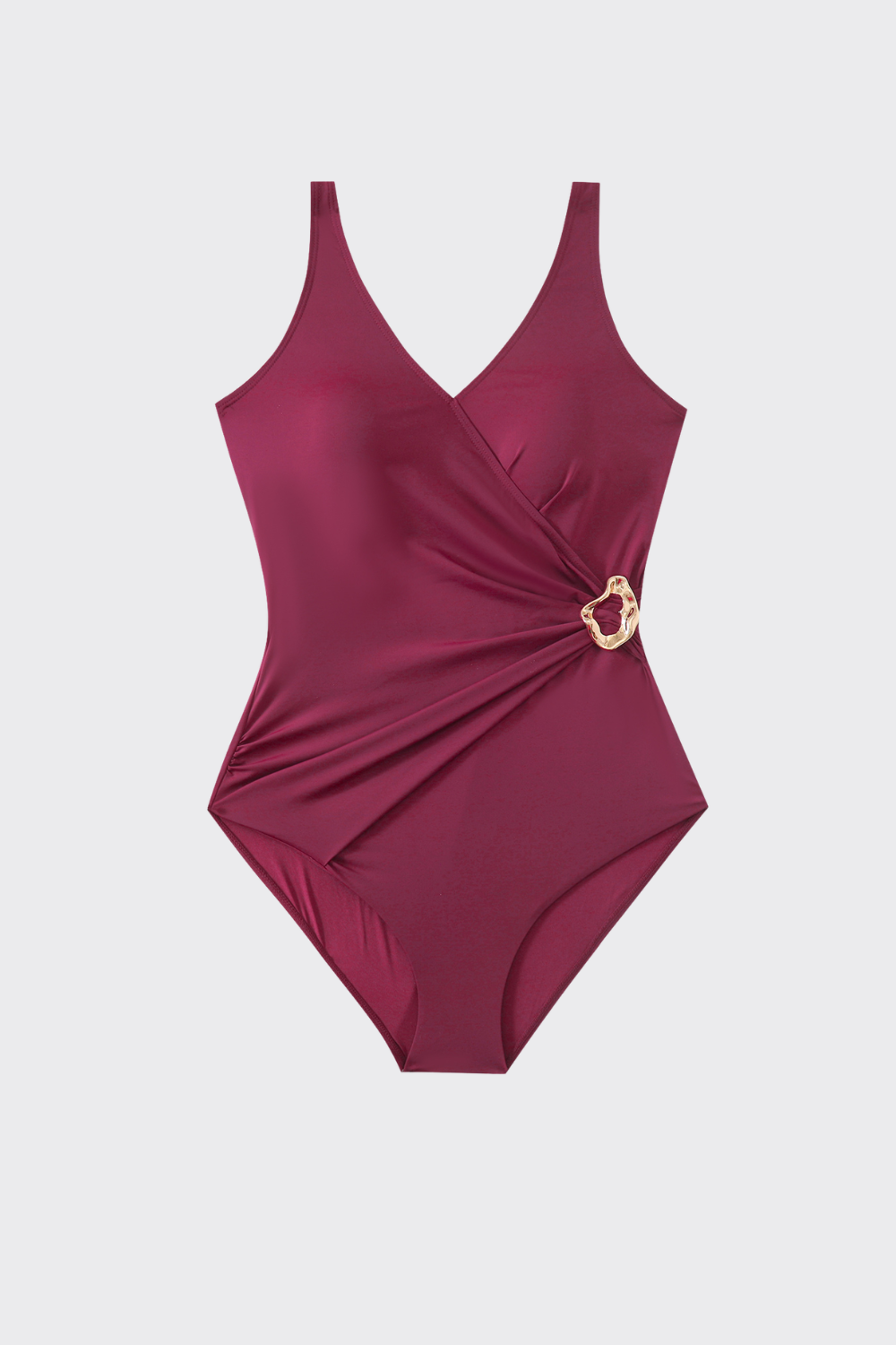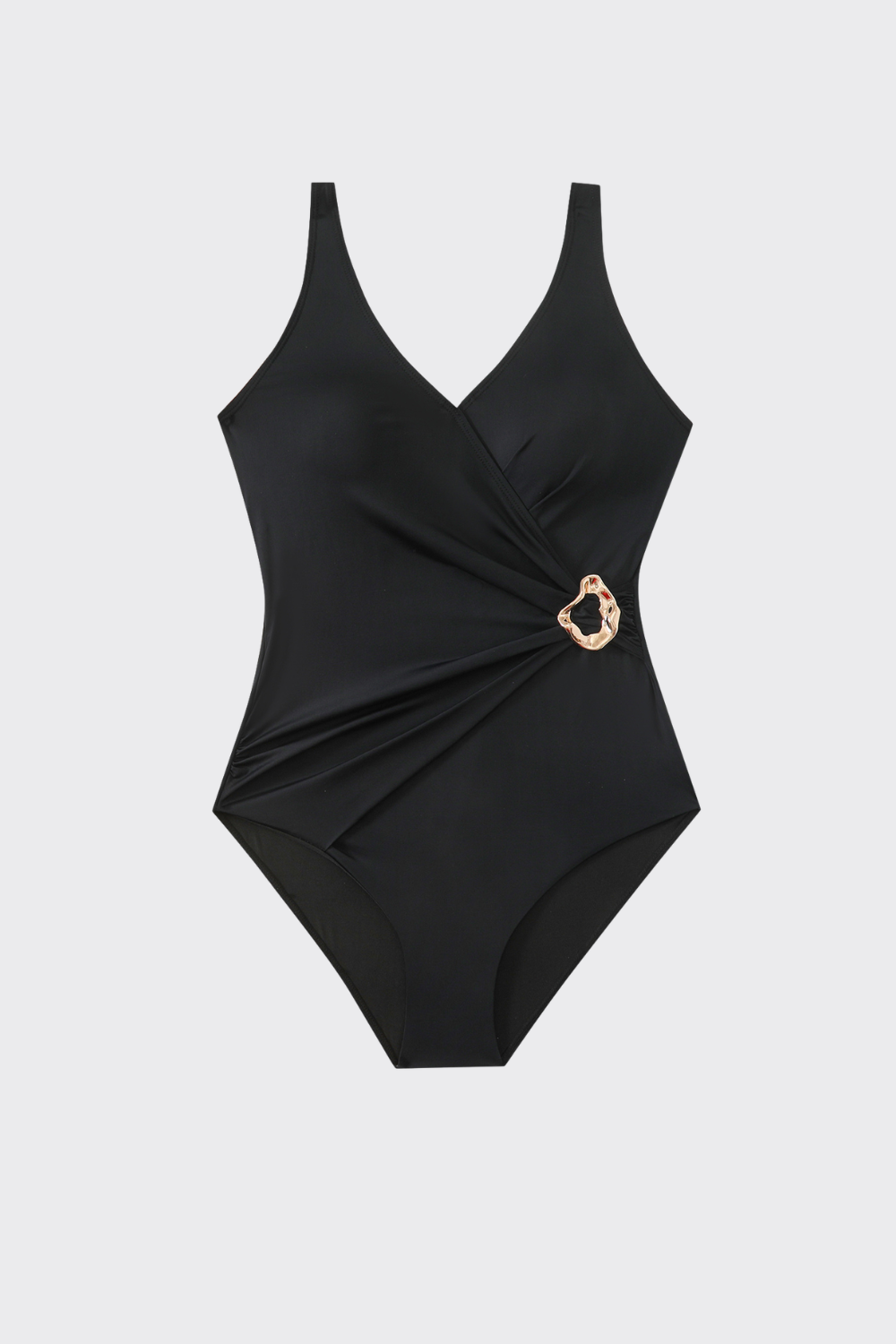 Elegante bañador en color liso que centra su sofisticación en un detalle asimétrico. Presenta un diseño cruzado que t...