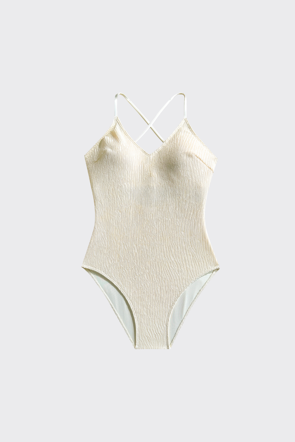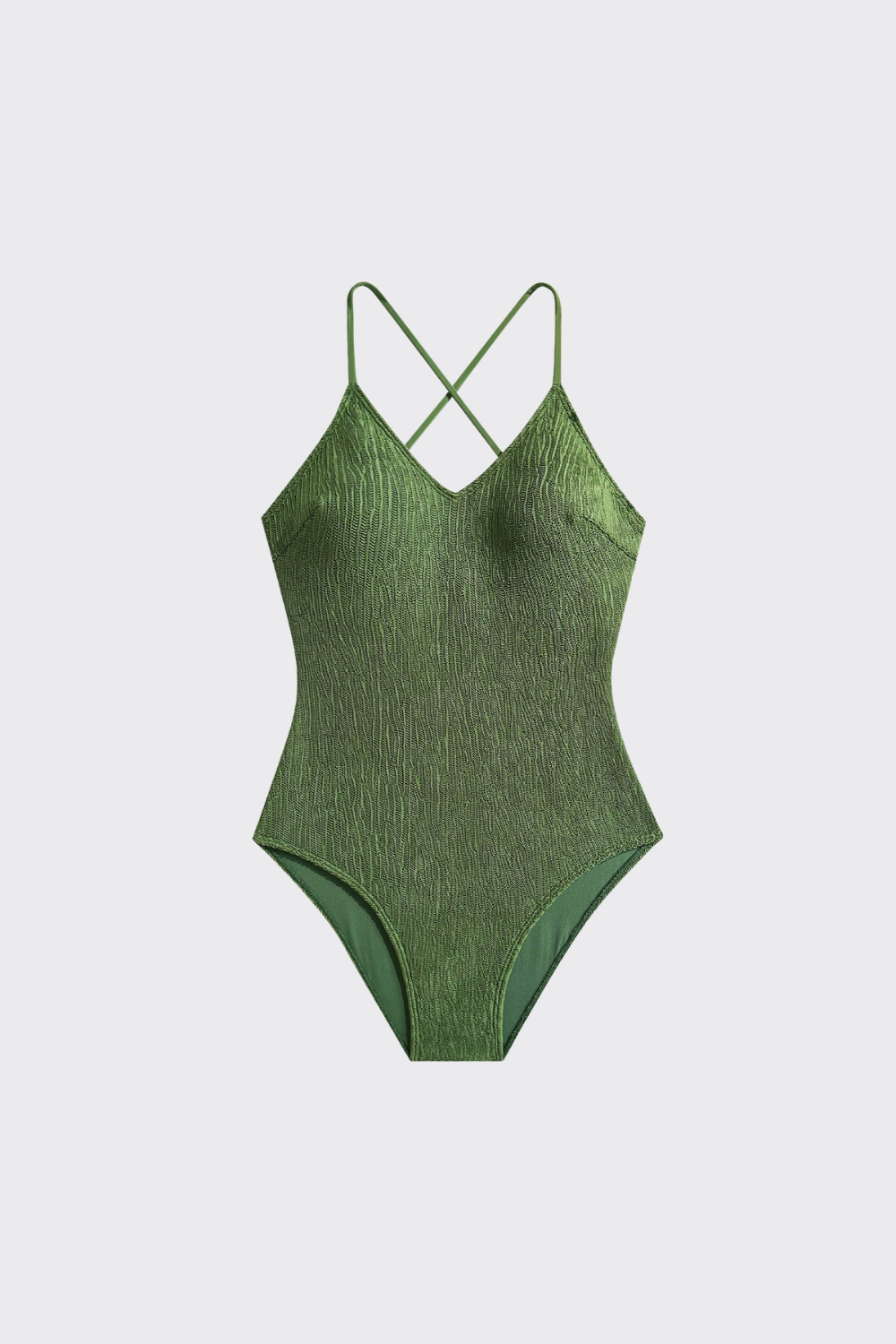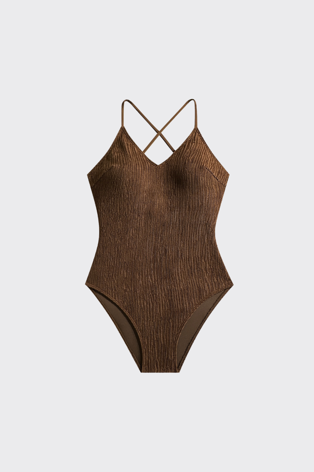 Bañador de una pieza con escote en pico pronunciado y tirantes finos que estilizan los hombros. El tejido presenta un...