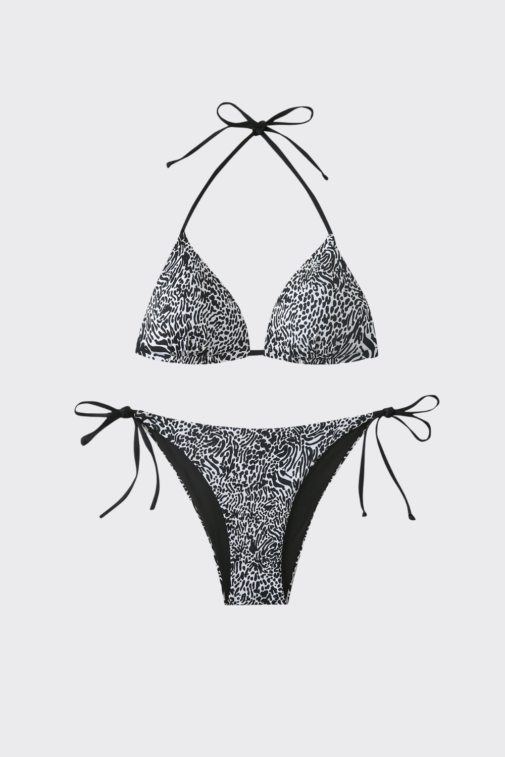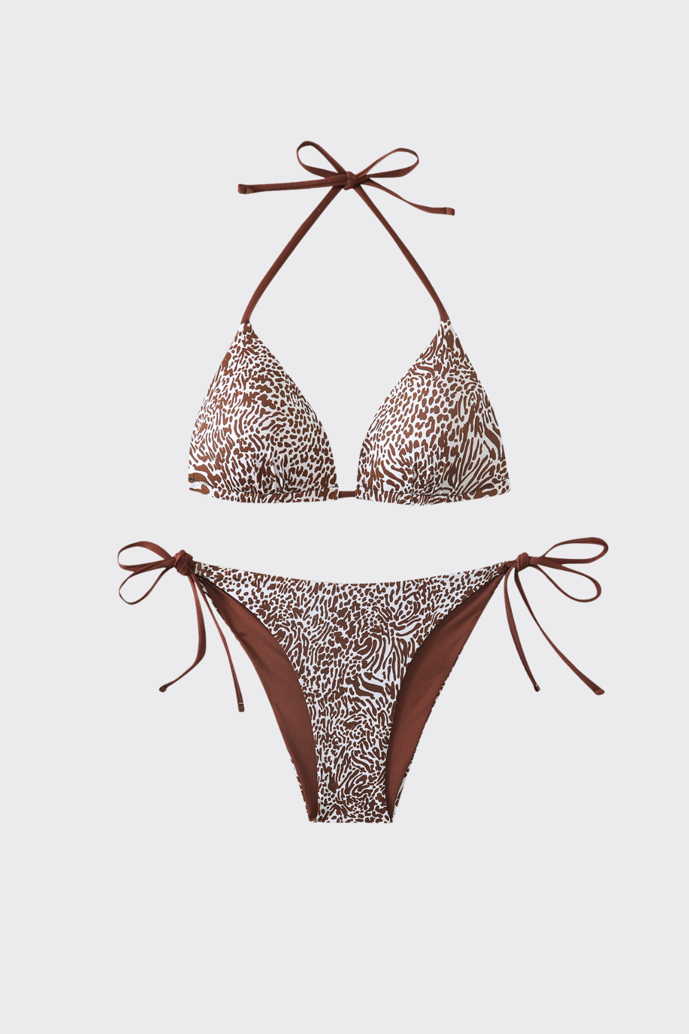 Este diseño destaca por su micro-estampado orgánico que cubre toda la prenda. El top cuenta con copas triangulares de...