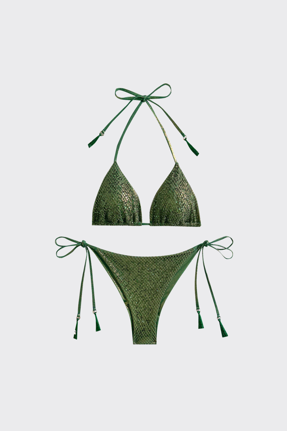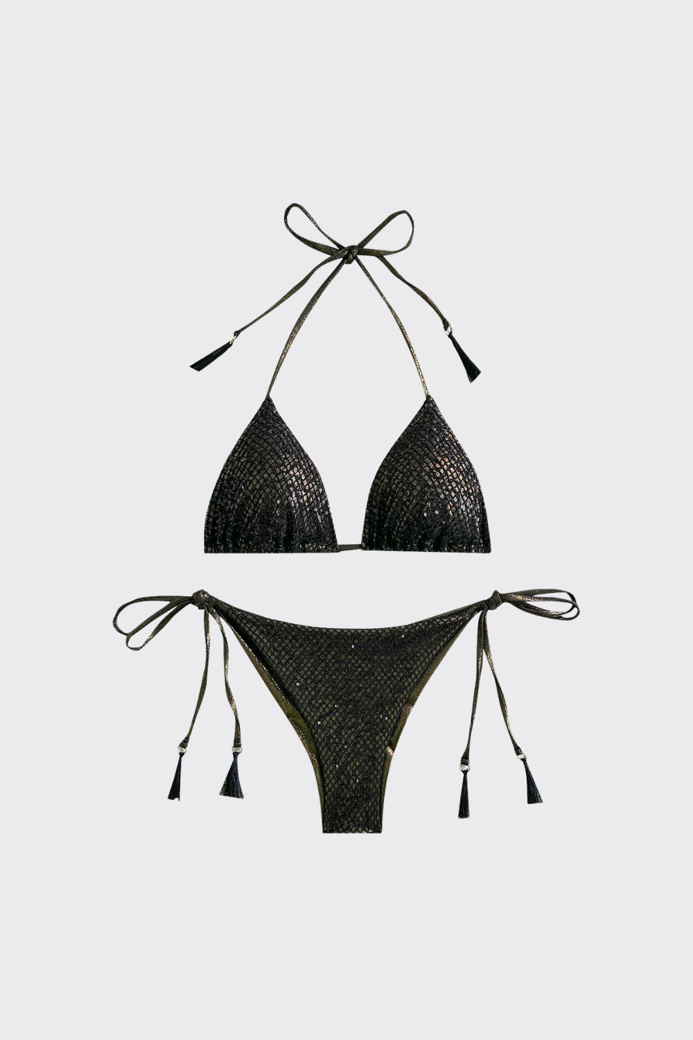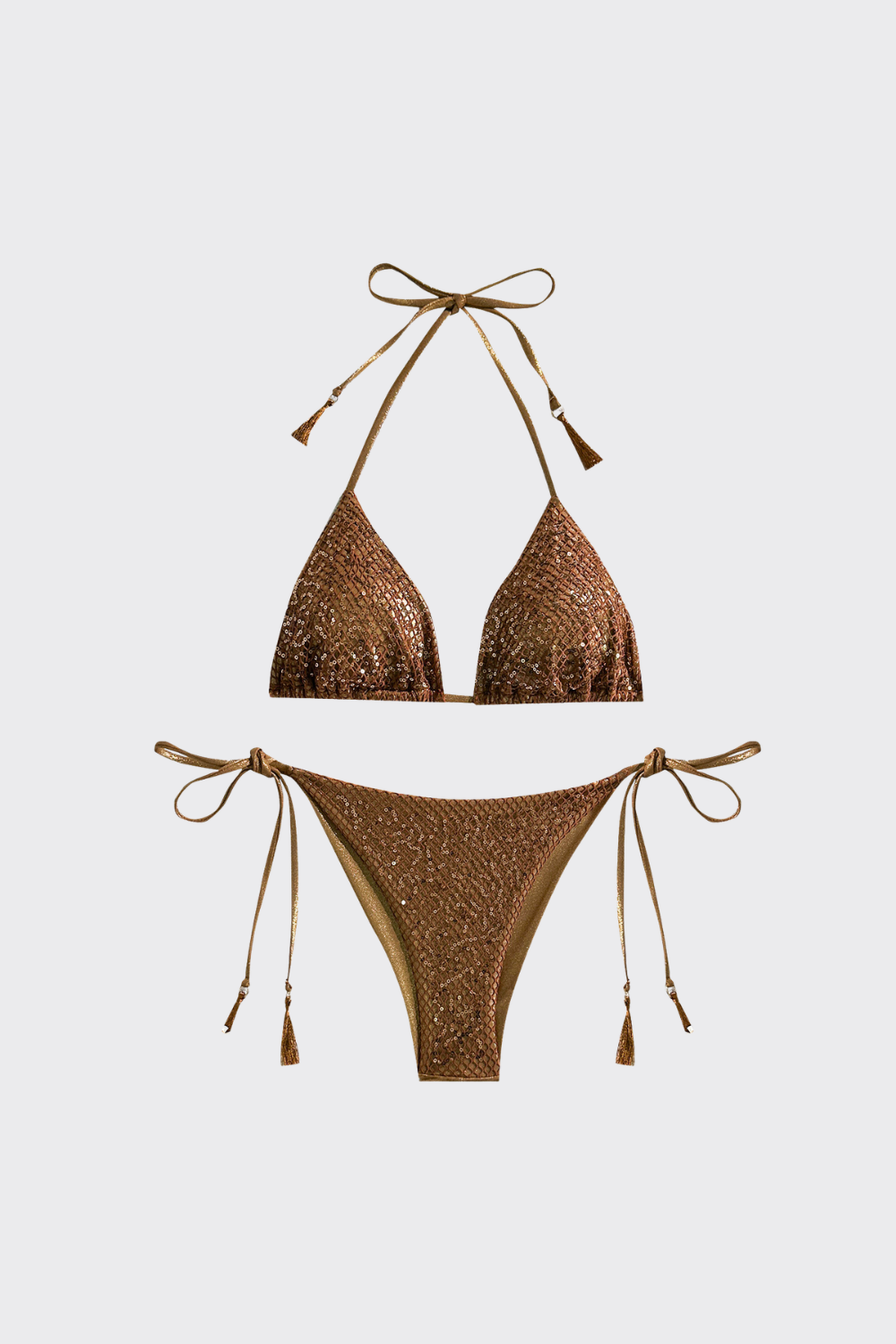 Un bikini de dos piezas diseñado para capturar todos los reflejos del sol. El top cuenta con copas de triángulo desli...